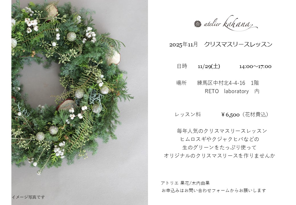 ブーケ・アレンジメント・リースやスワッグなど、ジャンルを問わずに花を楽しむレッスン。