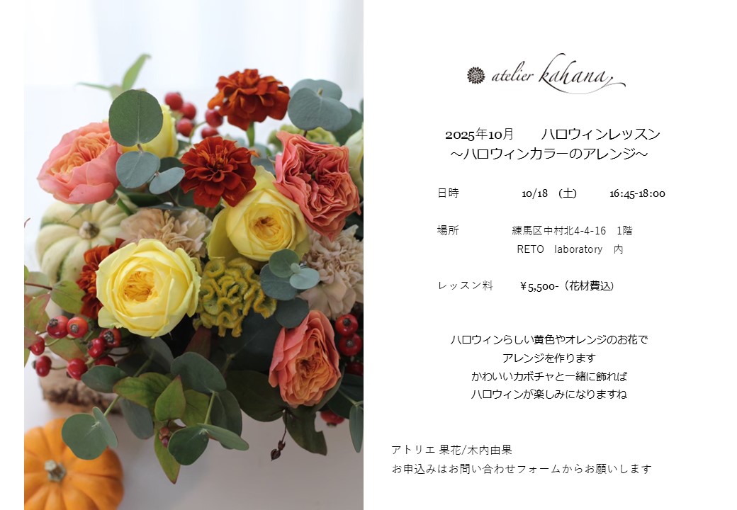 - 1回 ¥3,800(花材費込)/入会金なし 体験レッスンは¥3,500(花材費込)